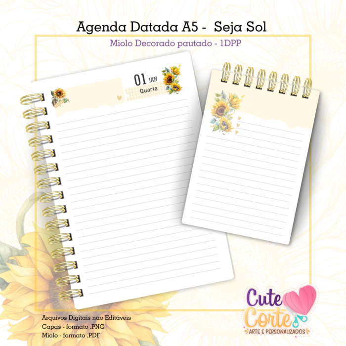– Miolo Agenda Datada 1 dia por página A5 – sem horário