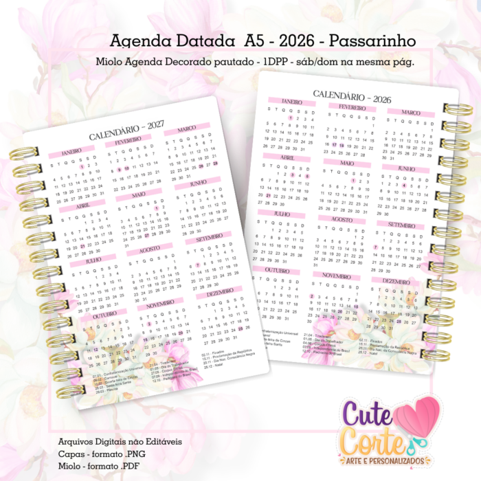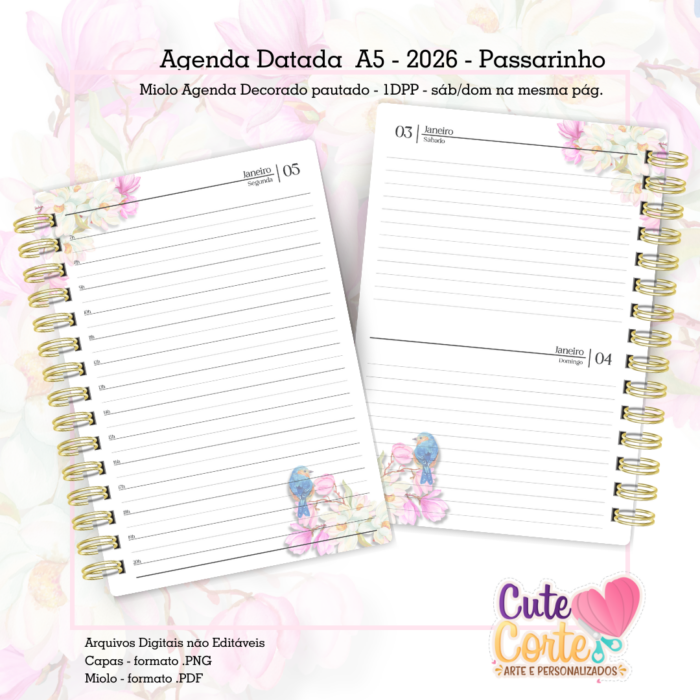 2 Miolo A5 Datado (com e sem horário) – 21.0×14,8 cm – Formato .PDF não editável