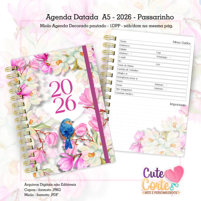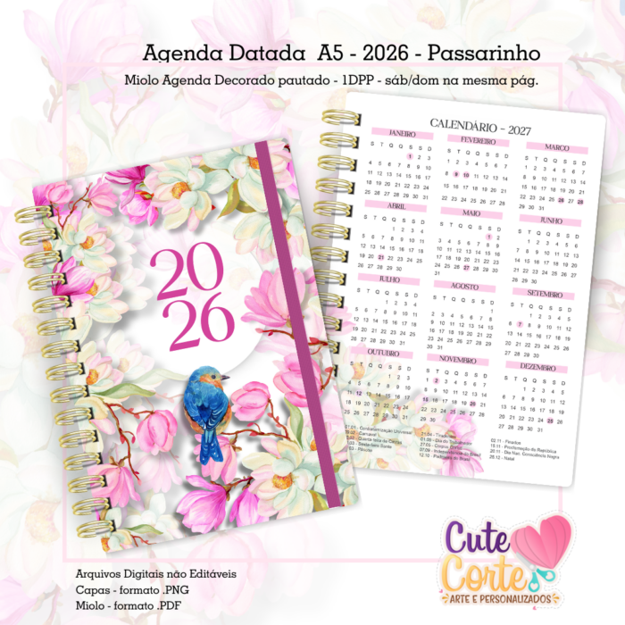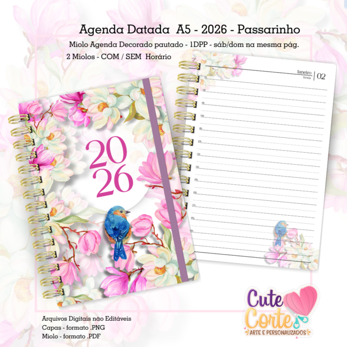 🌿✨ AGENDA 2026 PRONTA PARA IMPRIMIR – Passarinho ✨🌿