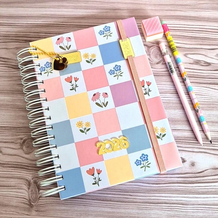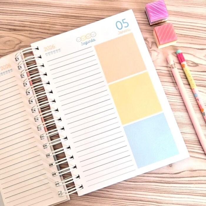 Temos aqui uma Agenda 2026 pronta para impressão, com design exclusivo, ideal para quem ama papelaria e quer organizar a rotina com charme e praticidade.