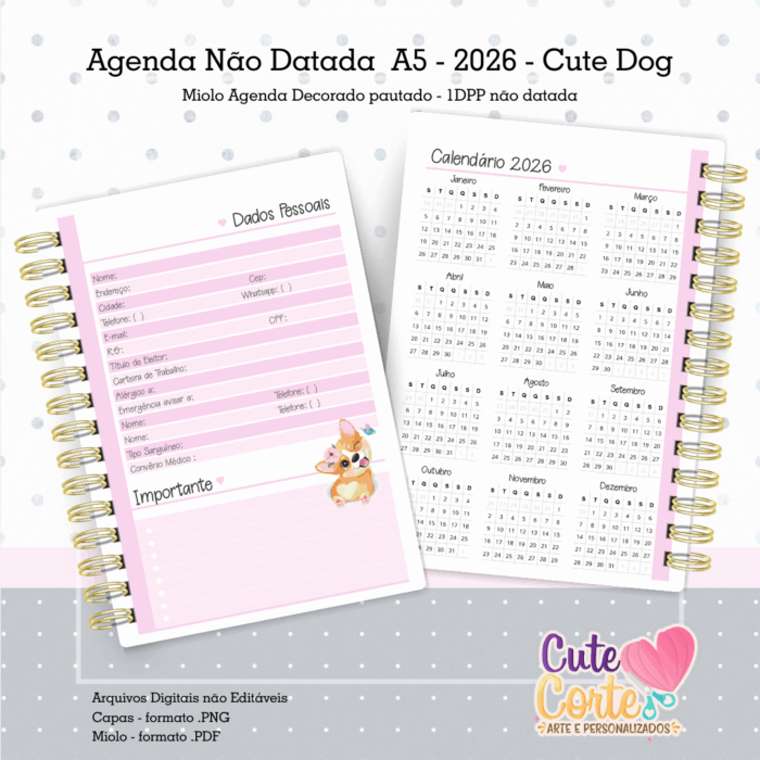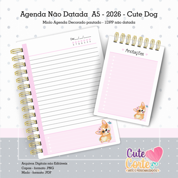 – Agenda Não Datada A5 + Bloquinho Pautado A6