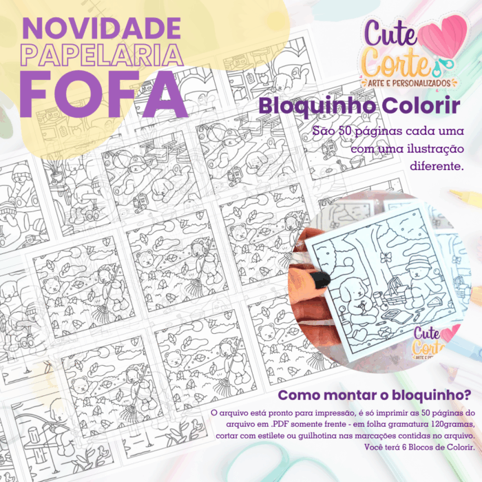 🌸 1 arquivo com 50 páginas, com ilustrações diferentes para colorir no tema amigos para vc imprimir e fazer blocos de lembrancinhas de colorir.