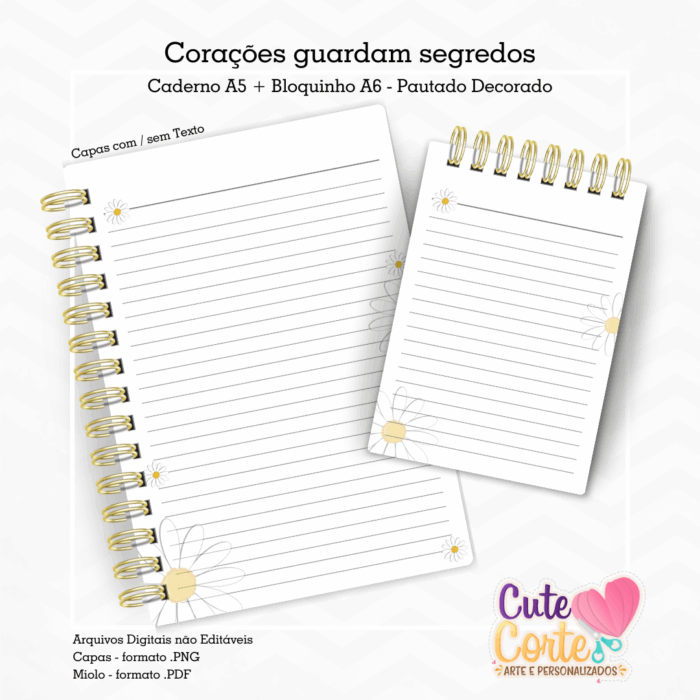 – Caderno Pautado A5 + Bloquinho Pautado A6 (Capas com e sem texto)