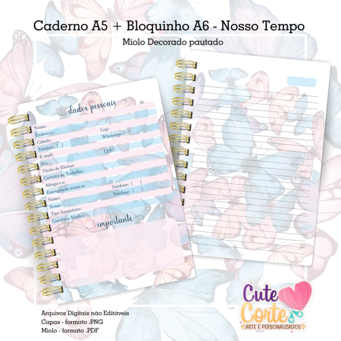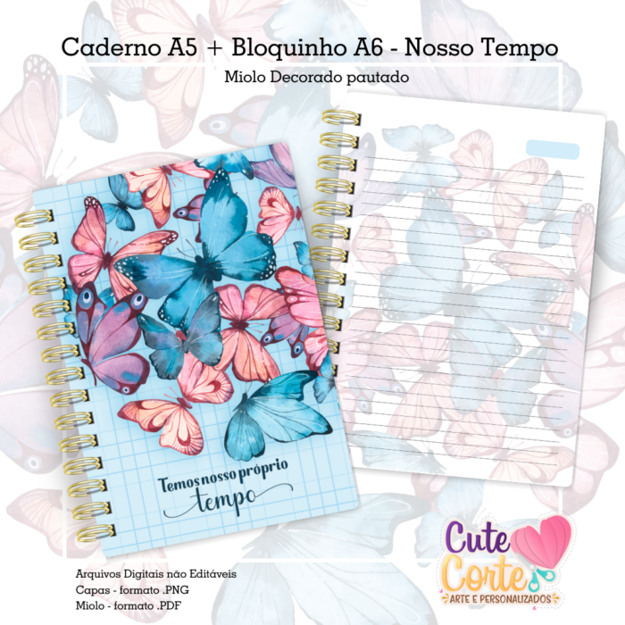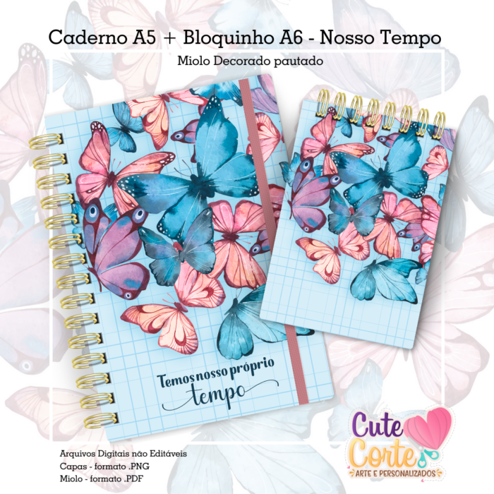 Caderno Pautado A5 + Bloquinho A6 – Nosso Tempo – Borboletas