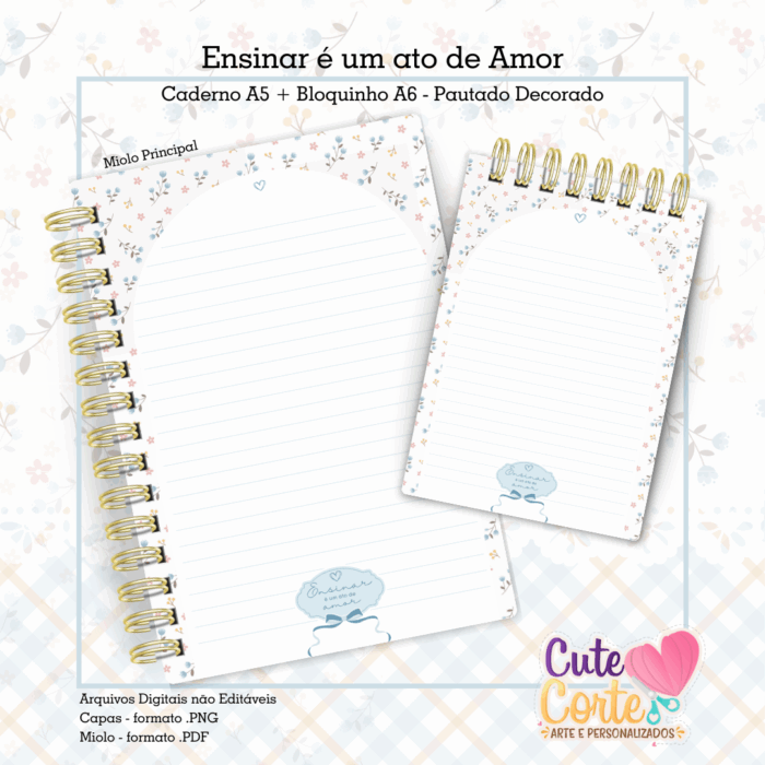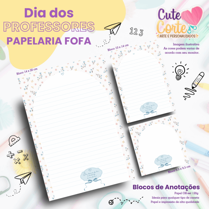 🌸 Caderno A5 + Bloco A6 + Pack Papelaria Fofa(Blocos nos tamanhos 14x20cm ; 10x14cm e 95x95cm)