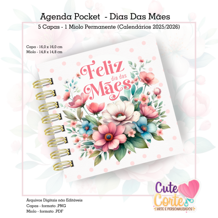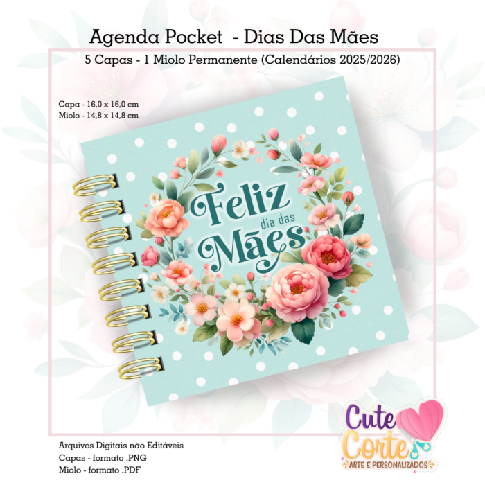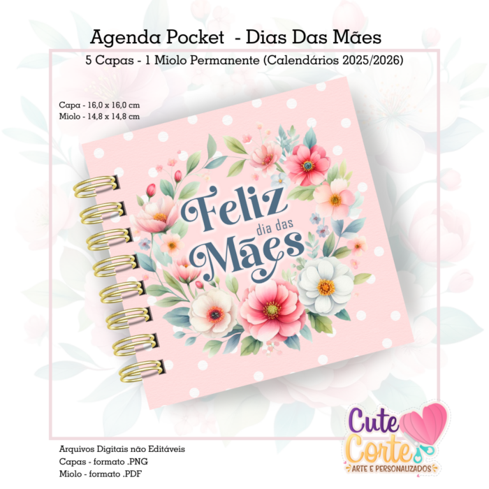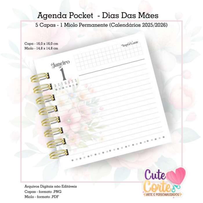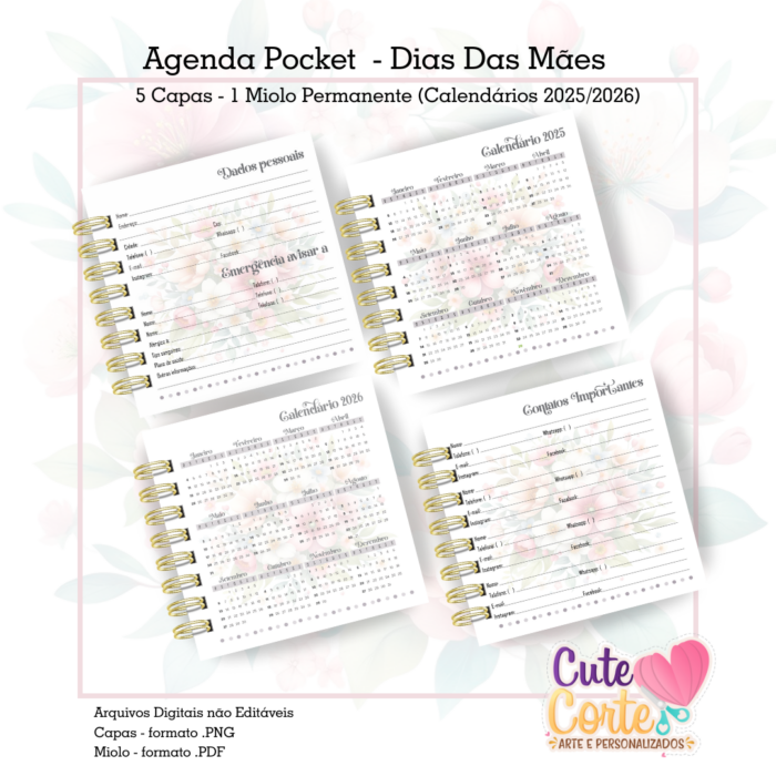 – 5 Capas Agenda Pocket em formato .PNG (com e sem texto) + 1 miolos agenda Pocket formato .PDF (não editável