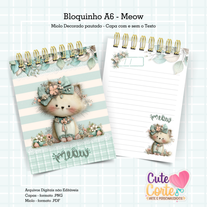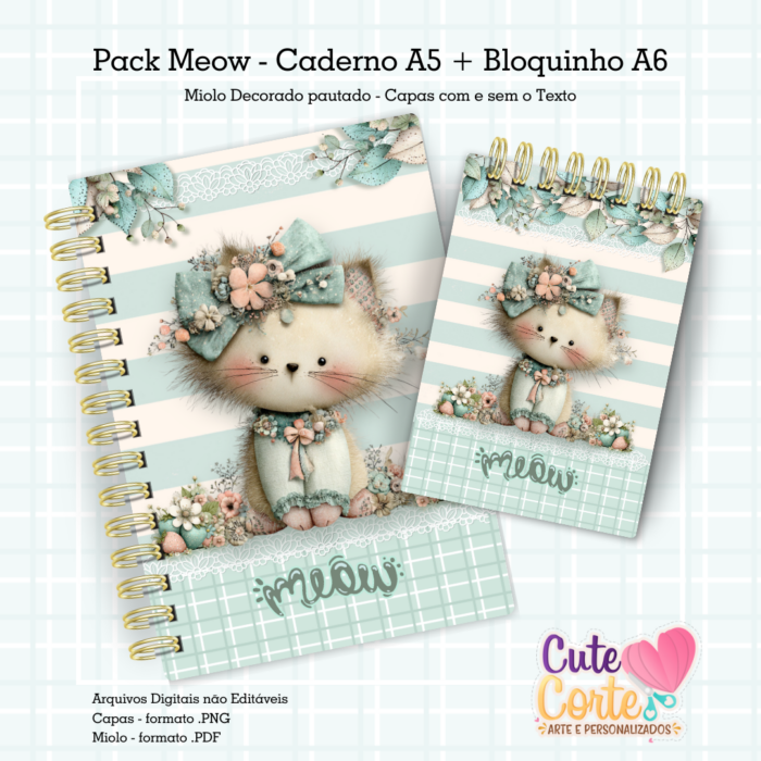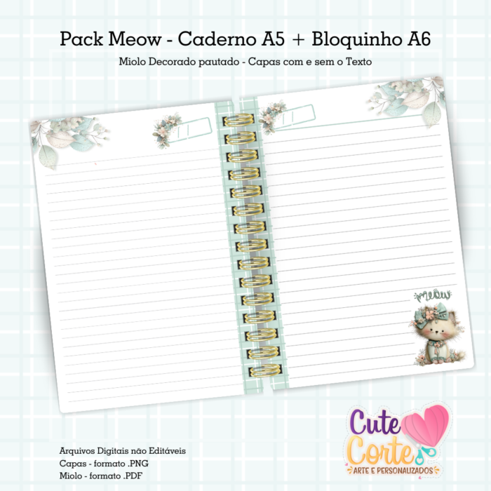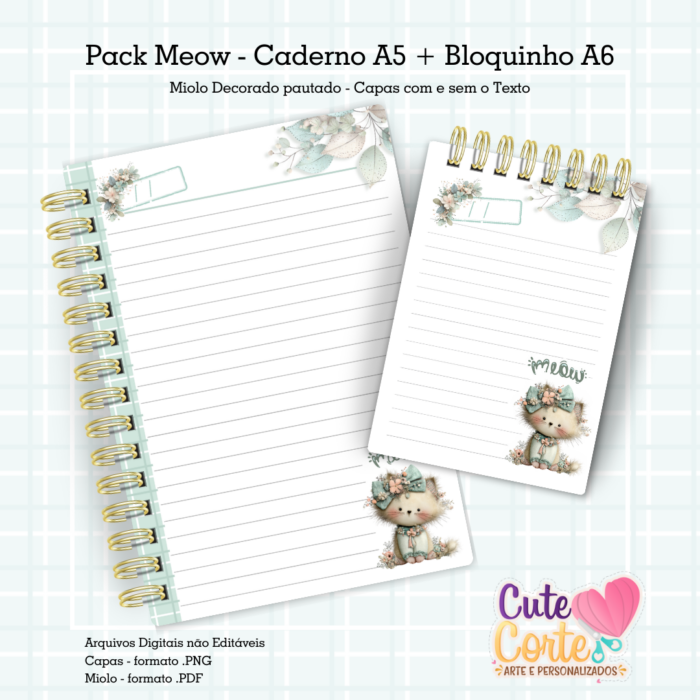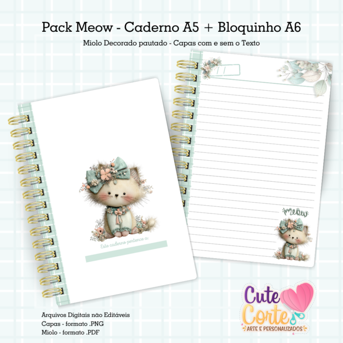 Pack Meow – Caderno Pautado A5 + Bloquinho A6