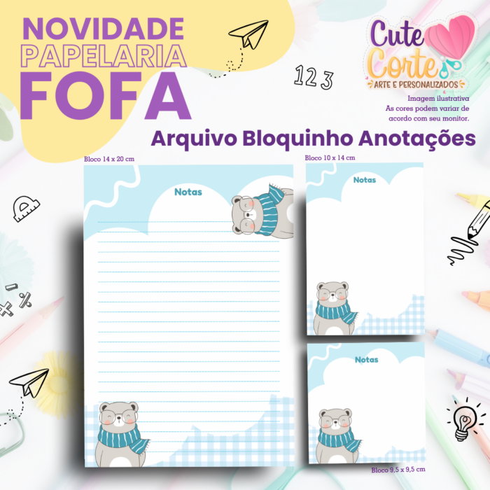 📌 Tamanho perfeito para carregar na bolsa. (Blocos nos tamanhos 14x20cm ( com e sem pauta) ; 10x14cm e 95x95cm)